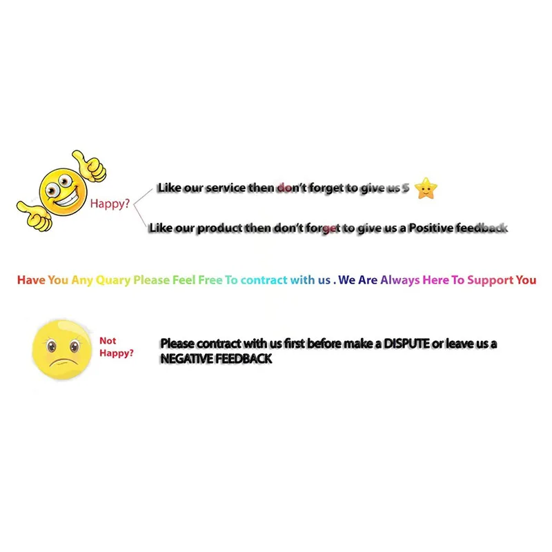 Our main motive is Customer Satisfaction and provides a good quality product and make best price for everyone.Please pay attention to the items descriptions. If you have any questions, please fell free to contact us We will try our best for you.Your message may be not reply in time during weekend and holiday,please don't worry! Once we come back to office , we will reply you As Soon As Possible.