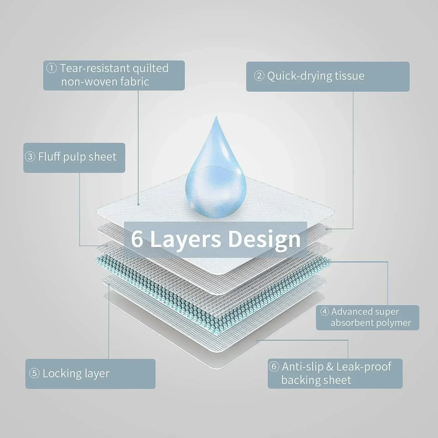 【Ultra Absorbent Polymer & Durable 6 Layers Protection】It is time to save your wooden floors and carpets! Our doggy pads are made of 6 strong layers material to prevent tearing, the diamond quilted design with super water locking fast diversion, faster infusion and absorption of liquid, No more sprinkles on the wall or wet footprints on wooden floor